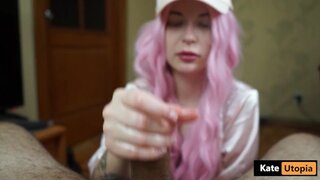 Pink Hair Teen do HandJob